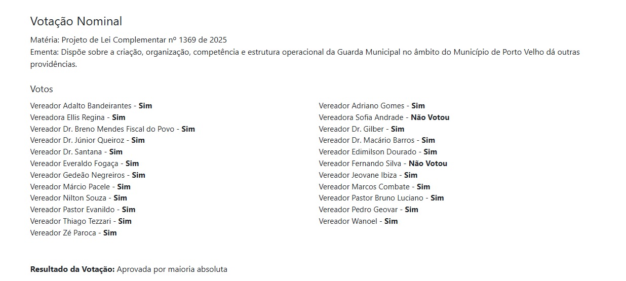 O vereador também não participou da votação que criou a Guarda Municipal Armada, assim como não votou na Moção de Repúdio protocolada pela Câmara de Vereadores contra a privatização da BR-364.
