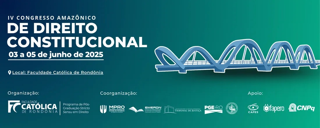 A Faculdade Católica de Rondônia (FCR) realiza, entre os dias 3 e 5 de junho, o IV Congresso Amazônico de Direito Constitucional, consolidado como um dos mais importantes espaços de debate jurídico da região Norte, com ênfase nas questões constitucionais aplicadas à realidade amazônica. As inscrições podem ser feitas no link: https://www.even3.com.br/iv-congresso-amazonico-de-direito-constitucional-564280/