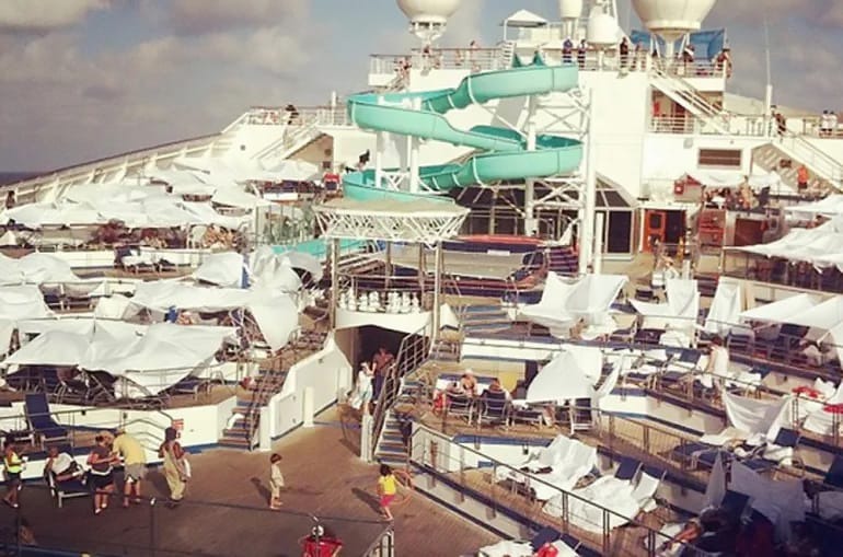 O caos aconteceu no navio “Carnival Triumph”, no dia 10 de fevereiro de 2013, durante um cruzeiro de quatro noites, com saída de Galveston, cidade do Texas, nos Estados Unidos, e uma parada na ilha paradisíaca e Cozumel, no México.