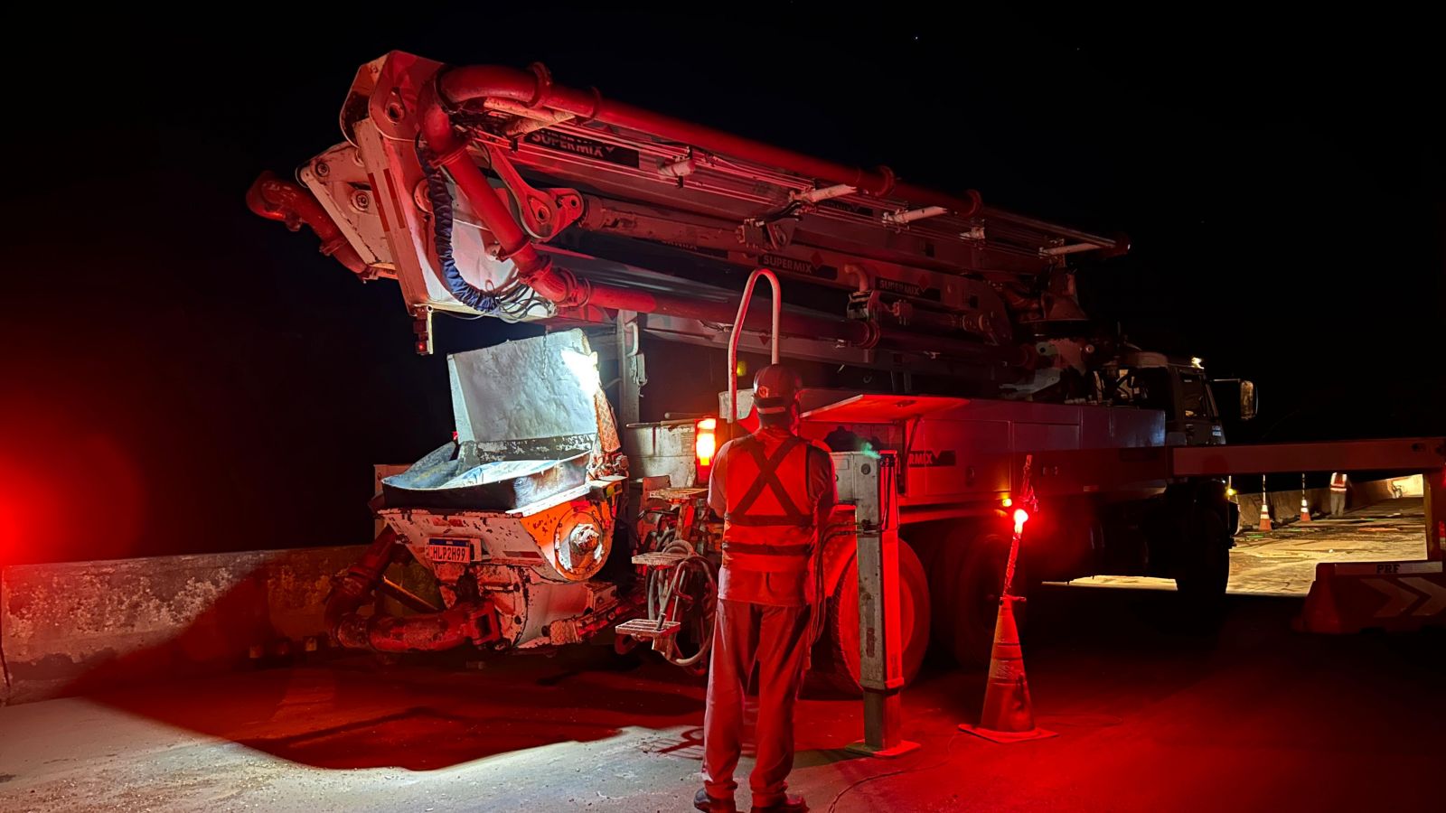 Será mantido sistema pare e siga com o controle de tráfego no local que está em obras. A pista está sinalizada para orientar os motoristas na passagem da ponte. Equipe técnica faz avaliações dos resultados da concretagem para a liberação da passagem de veiculos pesados.