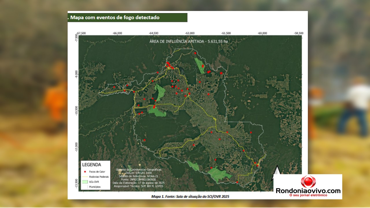 O Corpo de Bombeiros Militar divulgou neste domingo (17), os dados referentes as ações realizadas por meio da Operação Verde Rondônia – OVR 2025, na atual temporada de prevenção e combate aos eventos de fogo no estado. Os pontos mais concentrados com ocorrências de fogo continuam na faixa compreendida entre Machadinho do Oeste (Vale do Jamari), passando por Porto Velho (Vale do Madeira) até Guajará-Mirim (vales do Mamoré e Guaporé).