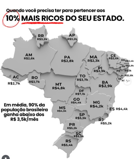 Para integrar o grupo dos 10% mais ricos de Rondônia, é preciso ganhar mais de R$ 3.700 por mês, segundo dados da PNAD Contínua do IBGE. A pesquisa revela ainda que 90% da população brasileira vive com renda inferior a R$ 3.500 mensais, evidenciando a desigualdade de renda no país. O levantamento mostra como valores relativamente baixos já colocam o cidadão entre os mais favorecidos economicamente, especialmente nas regiões Norte e Nordeste.