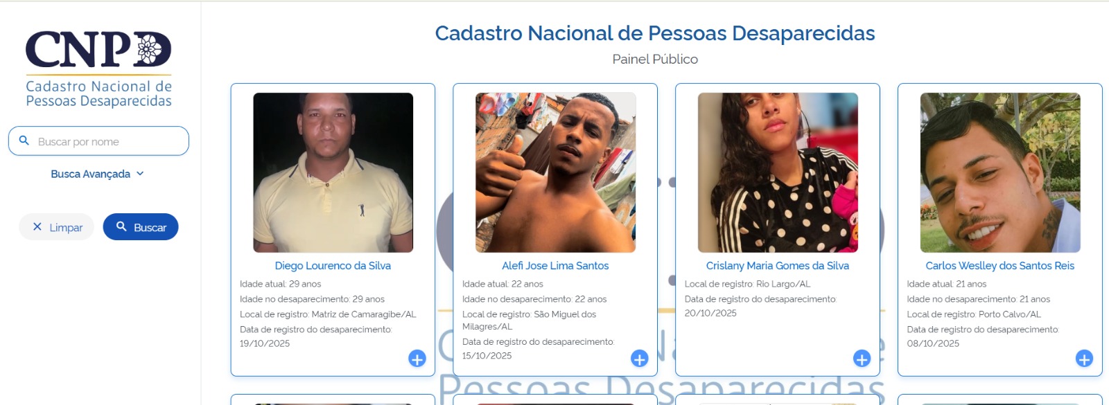 O Cadastro Nacional de Pessoas Desaparecidas pode ser acessado AQUI