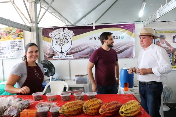 O casal Alex Moreira dos Santos e Melissa Almeida se encantaram pelo cacau e estão investindo num negócio de família. Produzem doces a base do fruto como rapaduras, pé de moleque e chocolate de açúcar mascavo, tudo a base de cacau e sem o uso de agrotóxico. O casal está participando da 7ª edição da Rondônia Rural Show em Ji-Paraná, o maior evento do setor na Região Norte do País.