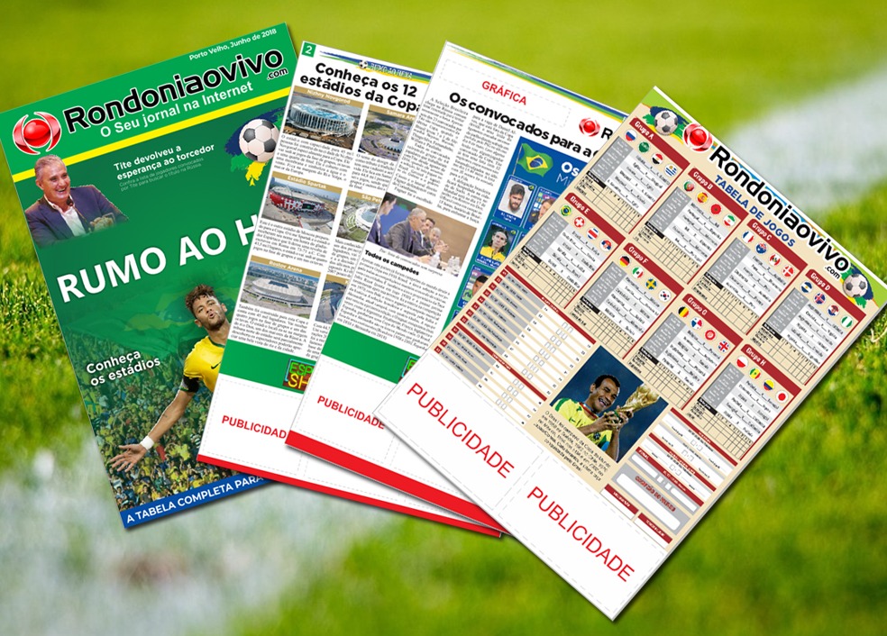 Saiu do forno a publicação do Rondoniaovivo que será sua companhia durante os jogos da Copa do Mundo 2018 na Rússia. Na publicação você saberá curiosidades do mundial com todos os campeões, os convocados e os estádios que serão sede dos jogos, além da tabela que o leitor poderá marcar todos os resultados da competição.