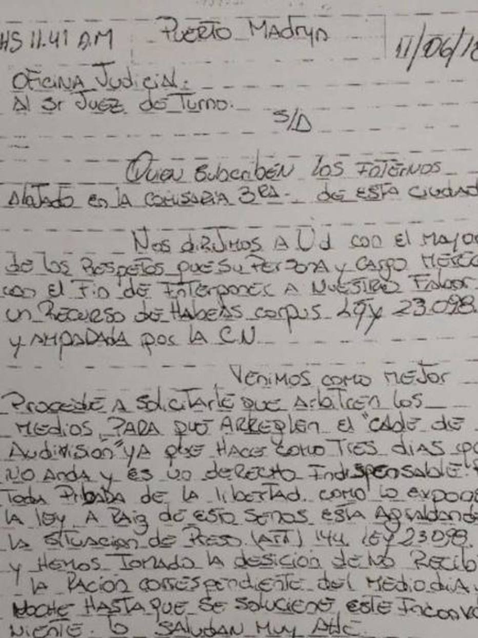 De acordo com o jornal Olé, o sinal da televisão dos presos caiu há alguns dias e gerou protestos. A carta foi enviada para direção do presídio e o único pedido é o retorno da programação do futebol. Caso contrário, eles não aceitarão as refeições entregues pelo sistema prisional.