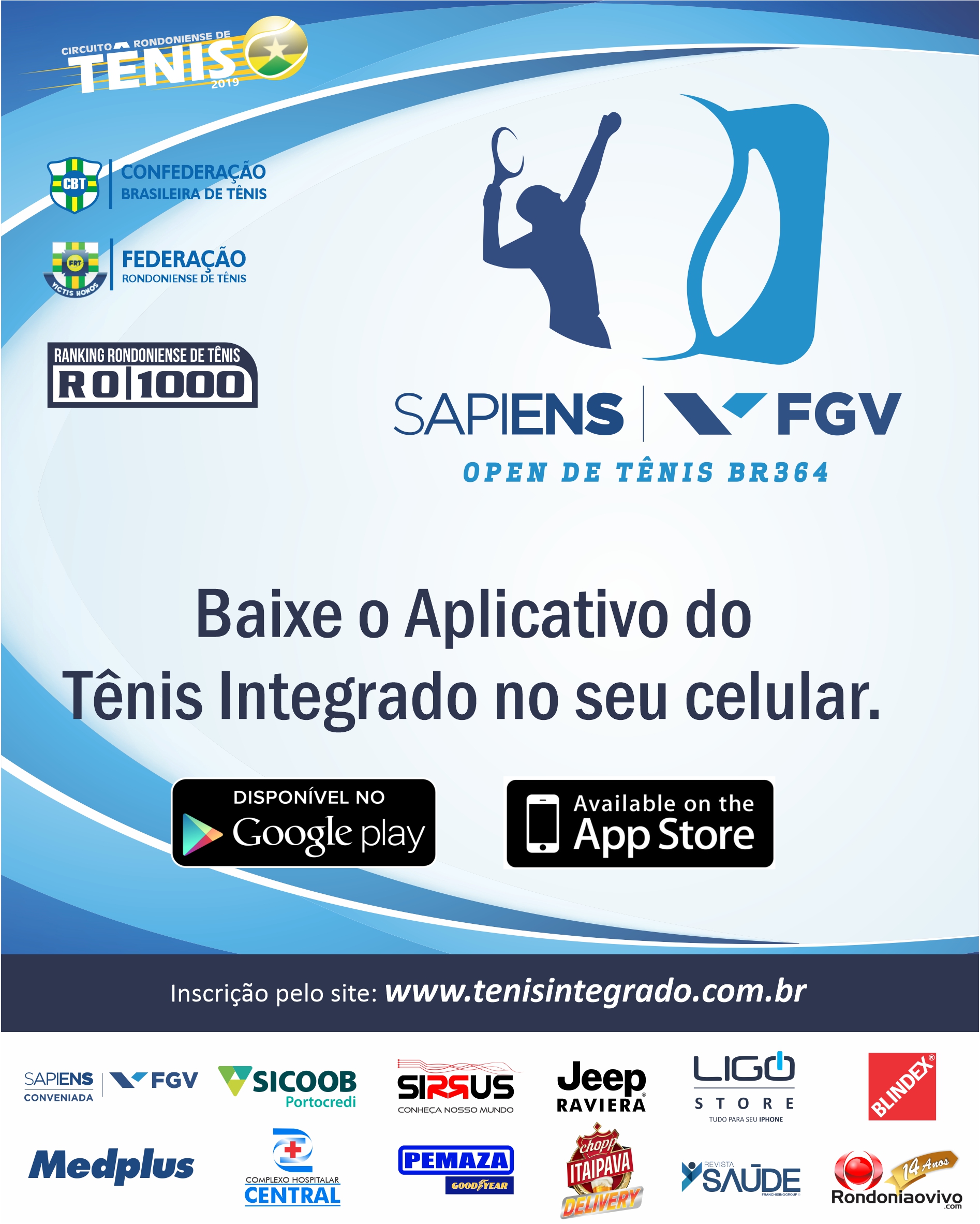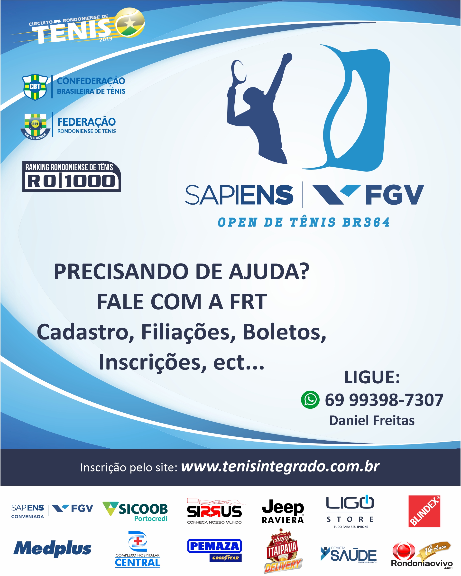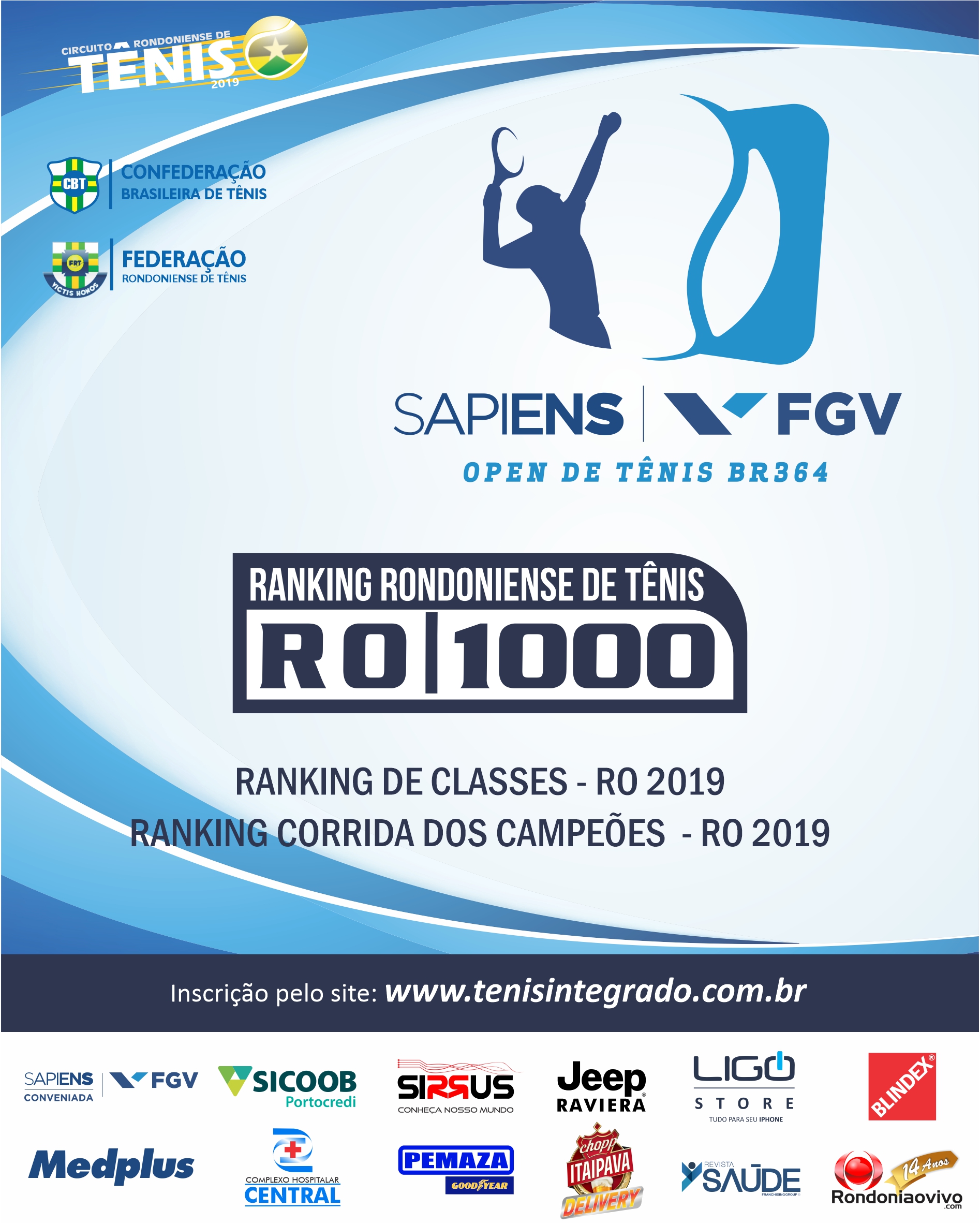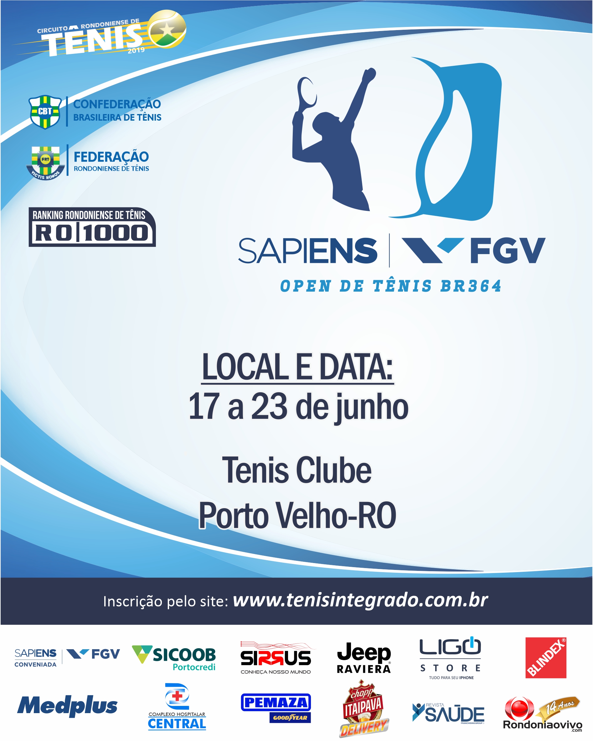 A Federação Rondoniense de Tênis informa que será realizado mais um torneio o Sapiens FGV Open de Tênis BR364 RO1000, entre os dias 17 e 23 de junho, no Tênis Clube de Porto Velho.