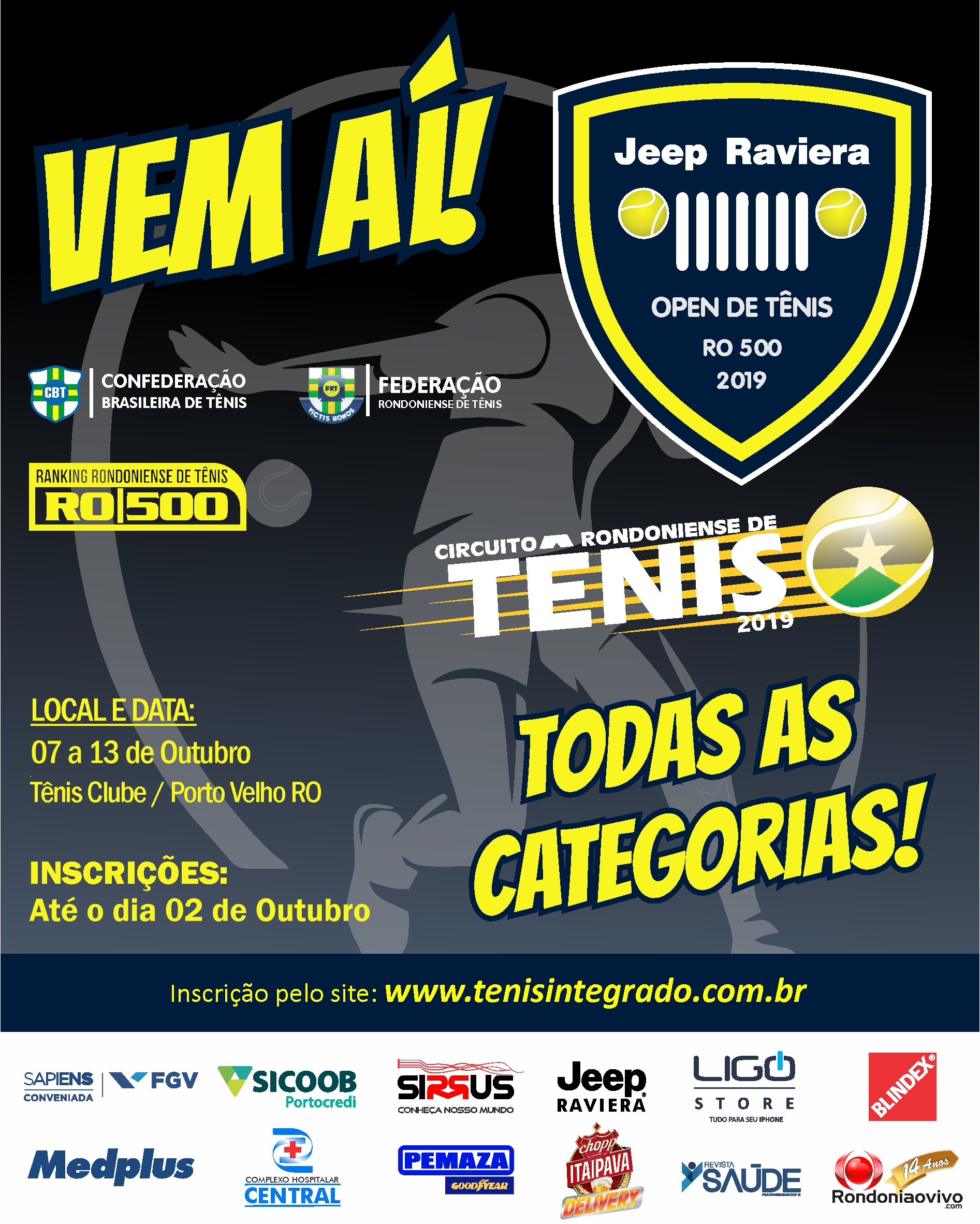 Foram abertas as inscrições para o Jeep Raviera Open de Tênis 2019, torneio que dá continuidade ao Circuito Rondoniense de Tênis 2019, será realizado entre os dias 07 a 13 de Outubro, no Tênis Clube/ Porto Velho-RO.