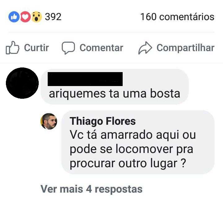 Um print de uma conversa em redes sociais está se tornando um viral, por meio da velocidade da informação. Desta vez a forma inusitada do chefe do poder executivo de Ariquemes Thiago Flores, em responder uma crítica, considerada mal educada foi o alvo. Após um internauta tecer um comentário crítico perante a atual situação da cidade, o político respondeu de forma contundente gerando dúvidas perante o gerenciamento de crises em redes sociais.
