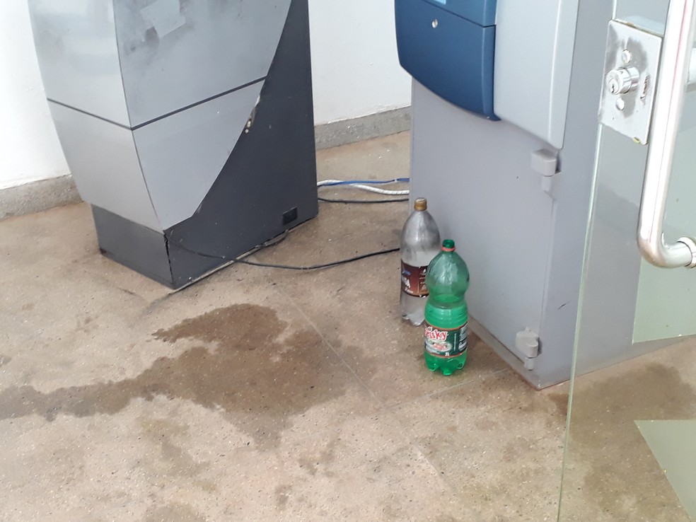 Após alguns minutos, o vigilante se soltou e ligou para a polícia. Várias viaturas fizeram diligências na tentativa de localizar o suspeito, mas não conseguiram. Pela parte externa os policiais conseguiram observar que os suspeitos tentaram abrir o caixa. Duas garrafas plásticas com um líquido transparente foram deixadas por eles em frente ao caixa.