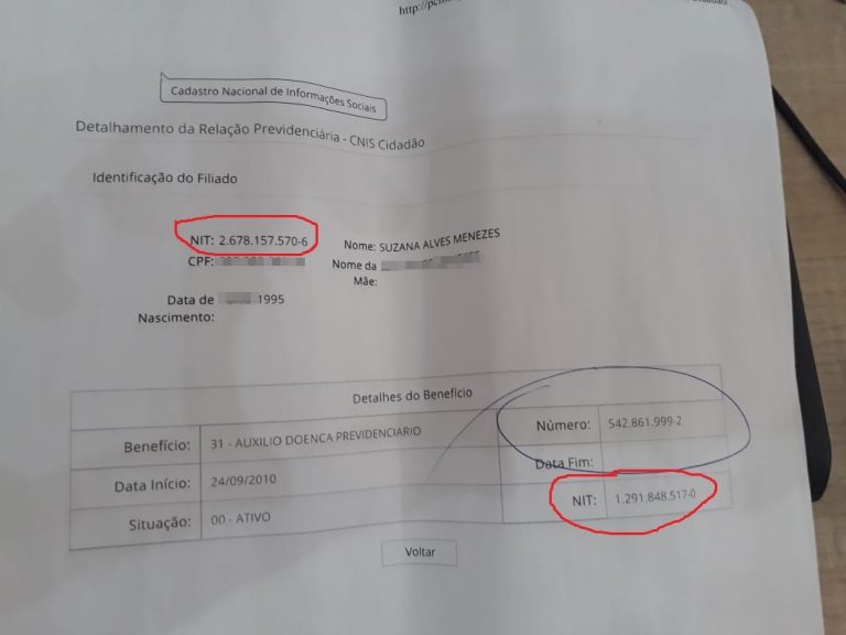 Já o outro NIT em nome de Suzana Alves Menezes, 23 anos, com registro de nascimento em Jaru (RO) não foi localizado nenhum benefício atrelado ao número de identificação do trabalhador.