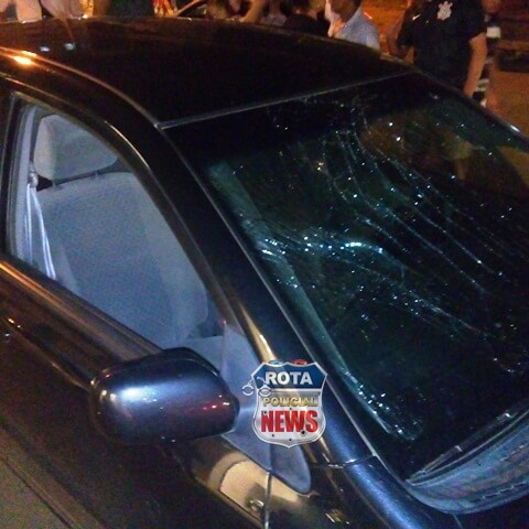 O para-brisas do carro e suportes internos foram danificados com a explosão do rojão.