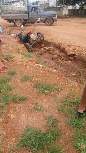 Um leitor da cidade de Cerejeiras flagrou o momento em que a moto adaptada, pilotada por um cadeirante, foi 'engolida' por uma cratera. O acidente aconteceu na rua Deputado Jô Sato, bairro Jardim São Paulo, na tarde desta quarta-feira, 20.