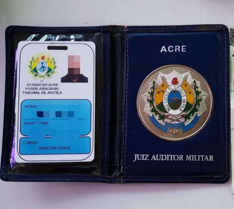 De imediato, o motorista, que estava acompanhado de duas mulheres e uma criança, se identificou para a guarnição como sendo juiz auditor militar do Acre, exercendo o cargo de Diretor Geral, tendo, na oportunidade, apresentado uma carteira funcional e um crachá relacionados ao Poder Judiciário do Acre.