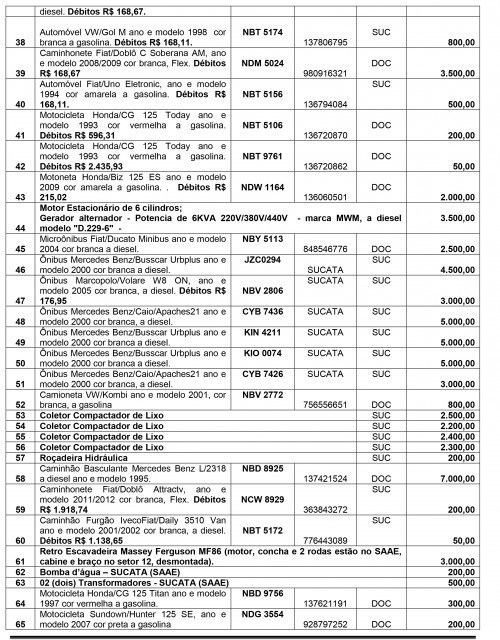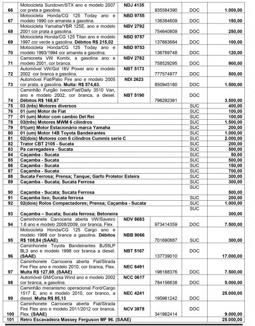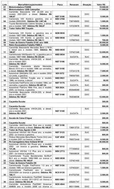 O edital ainda destaca que os interessados deverão se identificar e qualificar, portando seus documentos pessoais (RG e CPF), bem como ter visitado os lotes a fim de conhecer as condições que se encontram o bem.