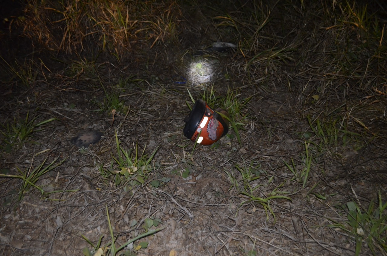 O impacto entre os veículos foi tão forte, que as vítimas e os capacetes, foram arremessados a vários metros de distância do local da colisão