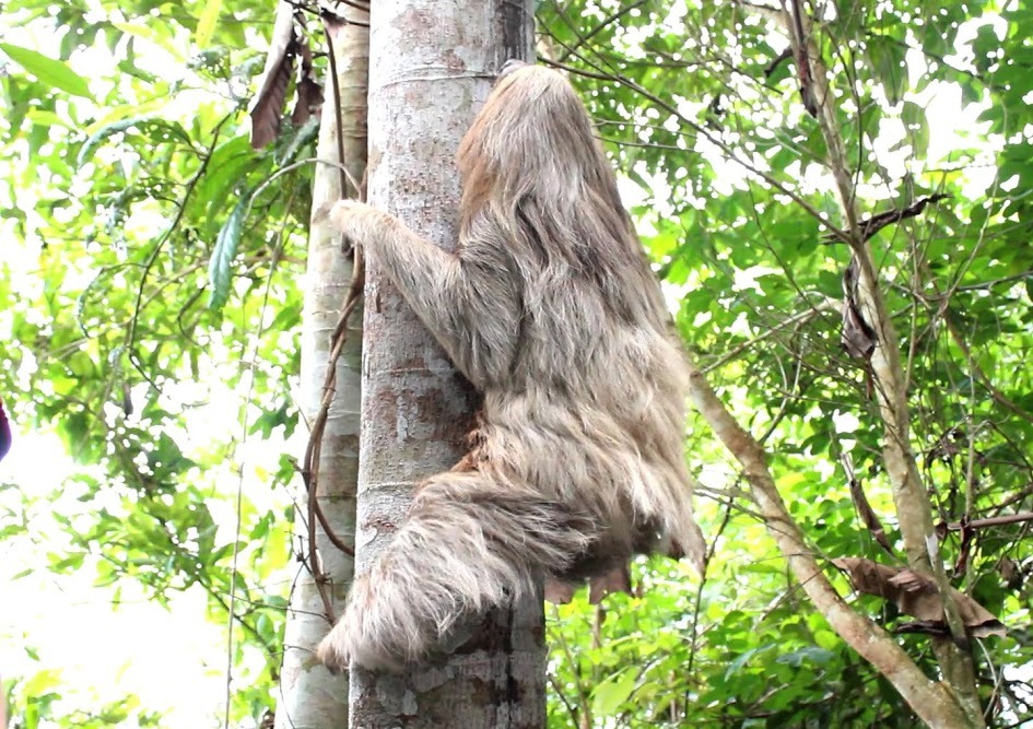 A PREGUIÇA-REAL - Esta espécie de preguiça é a maior da família dos megaloniquídeos, que vive há 35 milhões de anos no continente e está bem adaptada ao clima e à vegetação amazônica. Podendo chegar a 85 centímetros de comprimento, atinge de até nove quilos. Ela permanece quase toda a sua vida na copa das árvores e tem músculos fortíssimos, chegando a ficar agarrada nos ramos das árvores até mesmo durante seu longo período de sono que soma 20 horas diárias. O animal pode viver mais de 30 anos e as principais ameaças à espécie são o incêndio e o desmatamento.