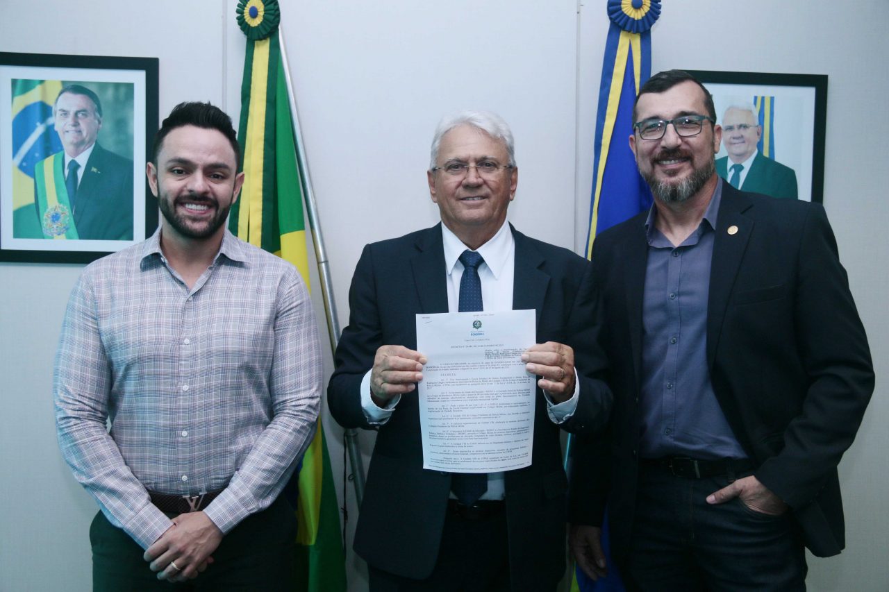 Secretário-chefe da Casa Civil, Júnior Gonçalves; governador em exercício, José Jodan; e secretário de Segurança Pública, José Hélio Cysneiros Pachá