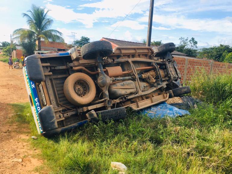 Nesta tarde de sábado (15), uma viatura que estava em ocorrência Policial, ao passar por uma ponte de madeira, no município de Ji-Paraná, quebrou o feixe de mola e capotou, e todos integrantes da guarnição estão bem.