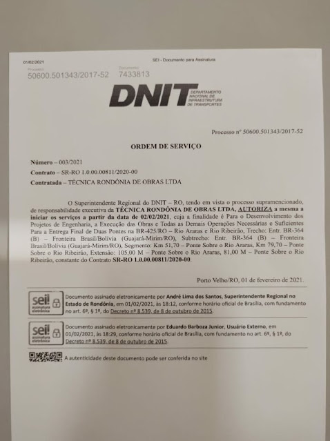 De acordo com a empresa que ganhou a licitação para construir a duas pontes, as obras devem começar logo depois do período das chuvas, em maio próximo. Melhoria na trafegabilidade, gerar empregos e preservar o Patrimônio Histórico de Rondônia.