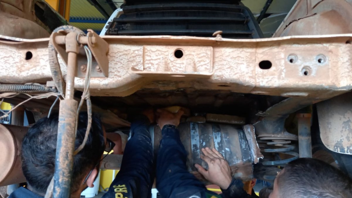 A equipe policial, durante a abordagem, desconfiada do comportamento do motorista que mostrava-se excessivamente nervoso diante de perguntas objetivas, efetuou buscas no veículo