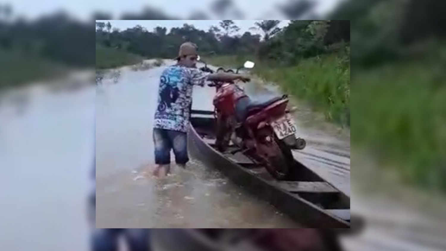 Diversas estradas vicinais da região estão tomadas por muita água, dificultando o trânsito das famílias