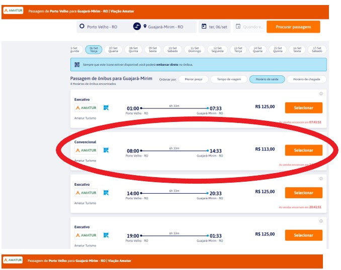 Um outro usuário da linha Guajará-Mirim x Porto Velho enviou para a equipe do Rondoniaovivo os horários disponíveis no site da empresa.
