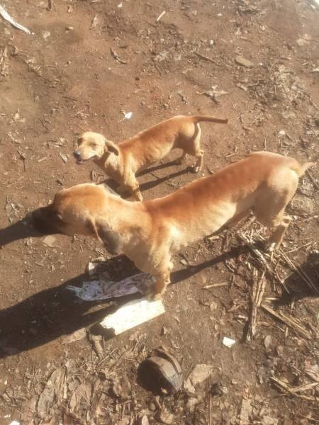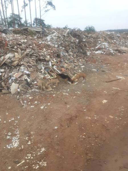 Imagens dos animais foram feitas na última quarta-feira (26) pela esposa do motorista de um dos caminhões que fazem descarte de material no local. O profissional tenta minimizar o sofrimento dos cães, oferecendo a eles água e comida.