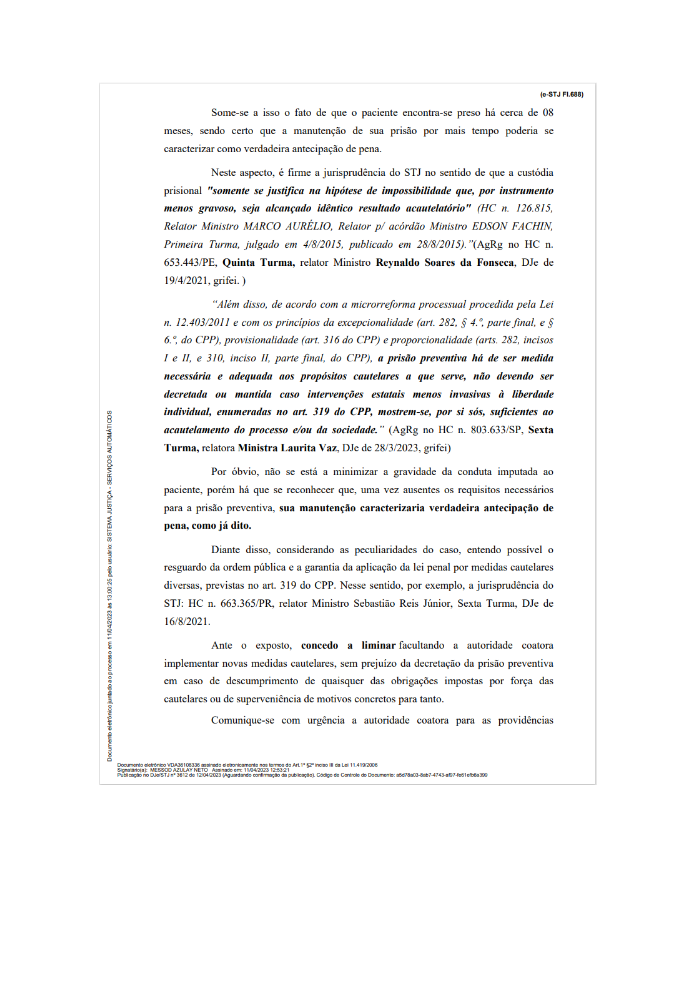 A decisão, prolatada pelo ministro Messod Azulay Neto, saiu na última segunda-feira (10), mas até a noite desta terça-feira ainda não aparecia no site do STJ.