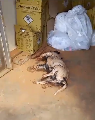 A imagem de um cachorro morto dentro das dependências do Hospital de Mirante de Serra causou um burburinho no município, localizado na região central de Rondônia. A filmagem mostra o corpo do animal cercado por moscas.