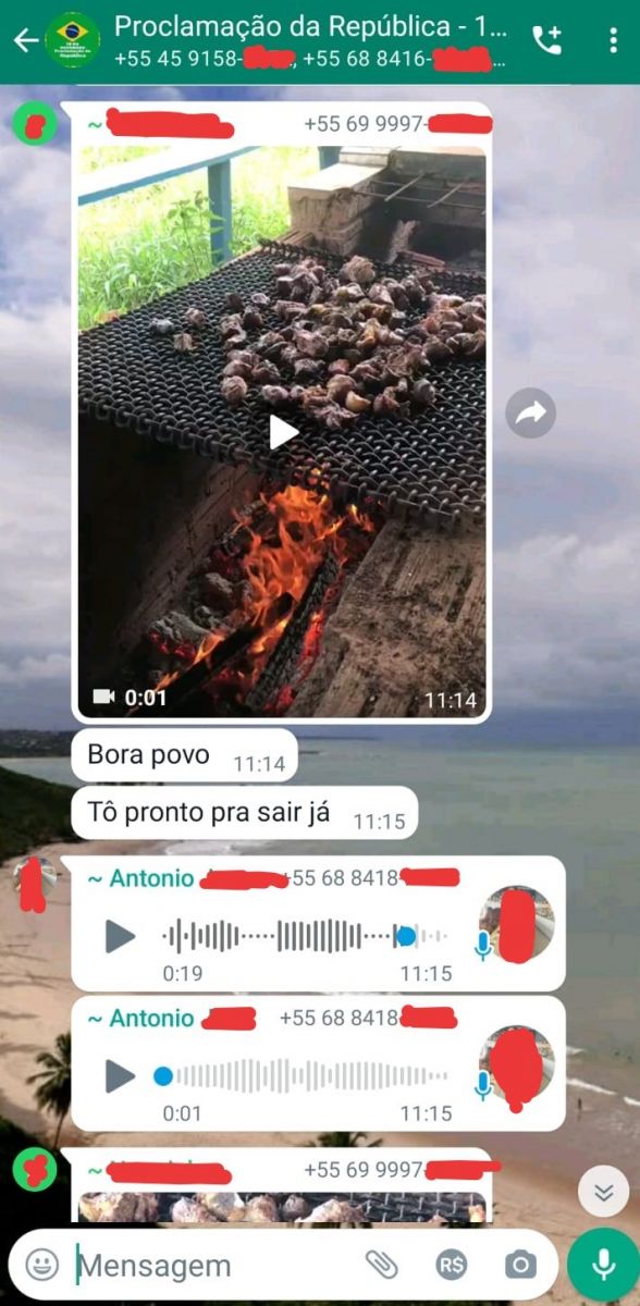 Um vídeo rápido divulgado no ambiente virtual mostrou pouco mais de 10 pessoas conversando e comendo carne assada. Um dos integrantes reforçou a convocação: “Bora povo. Tô pronto pra sair já”.