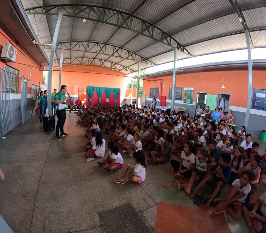 No período da tarde, a ação ambiental se estendeu à Escola Regina, onde uma palestra direcionada às crianças do 1º ao 5º ano foi ministrada. O objetivo foi educar sobre práticas sustentáveis de descarte e reutilização de resíduos, bem como sensibilizar sobre a importância dos aterros sanitários. O evento contou com a presença envolvente dos personagens Ecoman e Choruman, que através de um teatro educativo, aliado às palestras do gestor de Marketing, Jomar Souza, e do gestor ambiental Valdiney Lima, plantaram sementes de conscientização ecológica nas mentes das crianças.