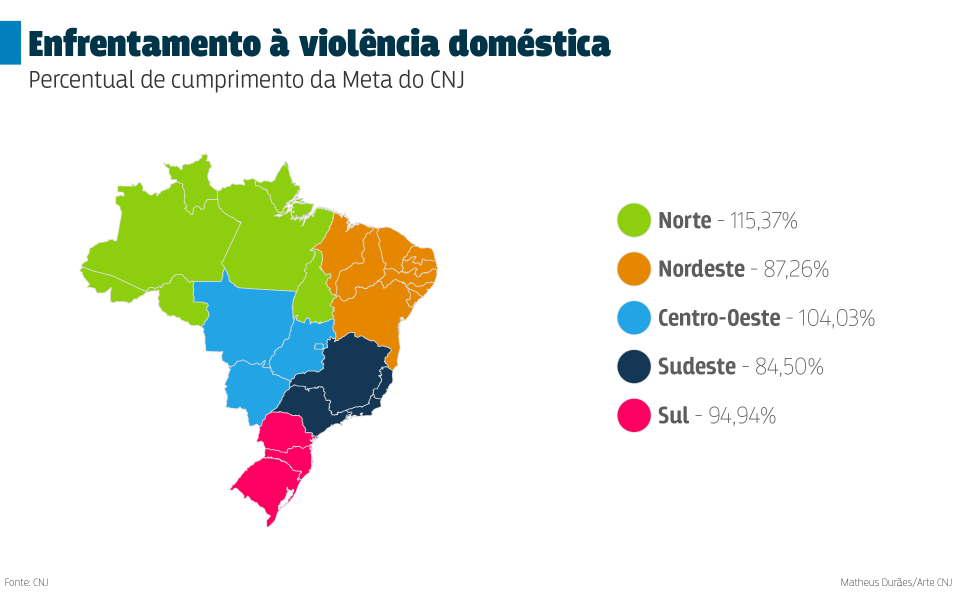 Dez tribunais estaduais ultrapassaram os 100% da meta 8 estipulada pelo Conselho Nacional de Justiça (CNJ), que trata do fortalecimento da rede de enfrentamento à violência doméstica e familiar contra a mulher, entre ele Rondônia que ultrapassou o objetivo de 100%. O Estado registrou 107,14% da meta.