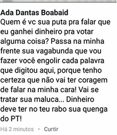 Trecho das ofensas proferidas na rede social.