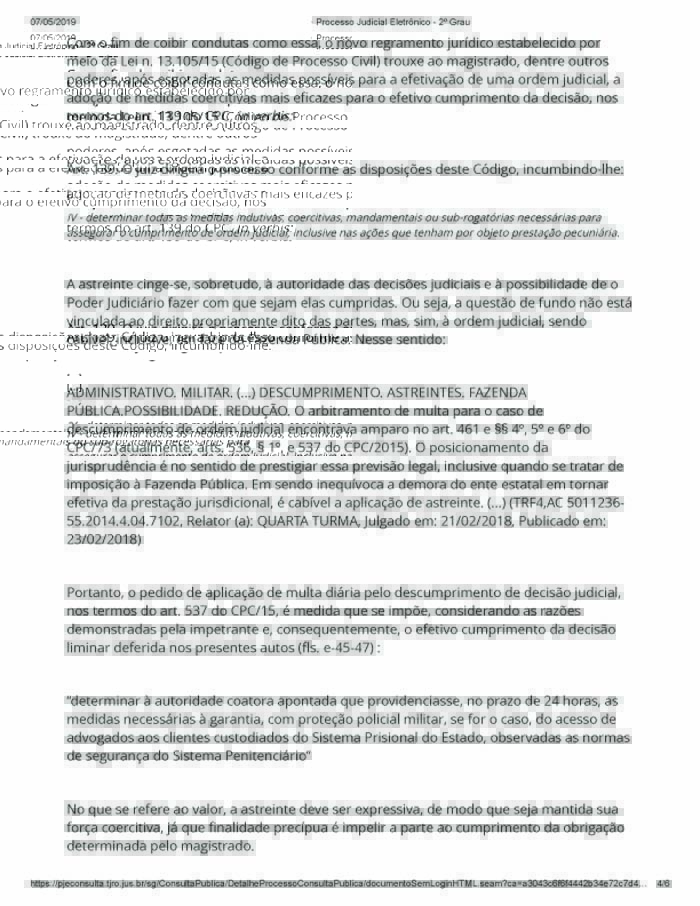 Para obter a decisão favorável, a OAB/RO noticiou descumprimento da ordem liminar concedida nos autos do mandado de segurança impetrado contra a secretária de Justiça (Sejus/RO), Etelvina Rocha, além de outras pessoas, a fim de determinar que fossem providenciadas as devidas medidas necessárias à garantia do acesso de advogados dos custodiados do Sistema Prisional, “observadas as normas de segurança”.