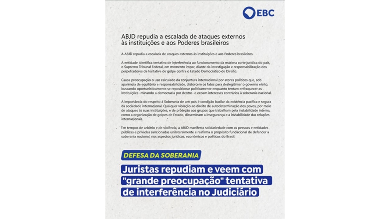 A Associação Brasileira de Juristas pela Democracia (ABJD) publicou uma carta aberta em que repudia a tentativa de interferência no Judiciário brasileiro e ataques à soberania nacional.