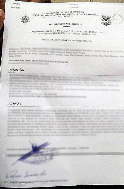 O comissionado Arnaldo Lourenço, conhecido por ´Buiu´ - foi denunciado no 8º DP de Porto Velho pela servidora pública municipal Ravane Fernandes Lima por racismo, preconceito e discriminação (consumado).
