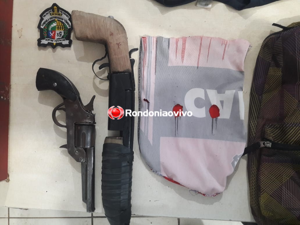 O homicida Leandro A. S. L., 23, foi preso na tarde desta quinta-feira (06) com duas armas de fogo após assaltar um jovem de 24 anos na Rua Pirinópolis, bairro Jardim Santana, na zona Leste de Porto Velho (RO). O comparsa dele fugiu.