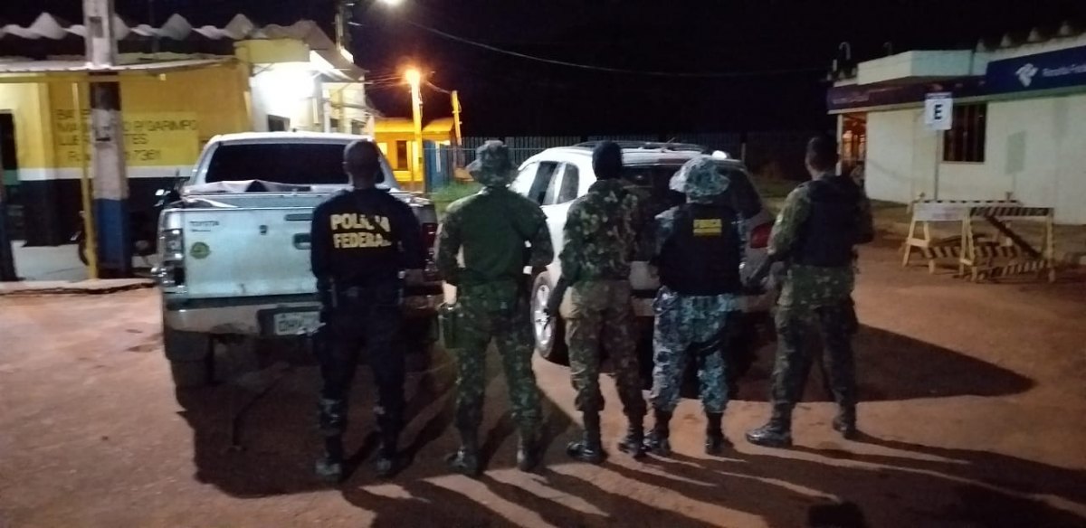 A Polícia Federal, em mais uma ação da Operação Fronteira Fechada, com o apoio do Exército Brasileiro, deparou-se com indivíduos tentando cruzar o rio com dois veículos suspeitos.