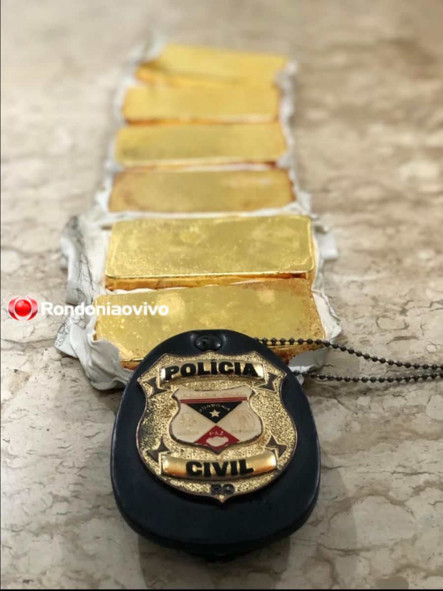 Policiais civis participando da Operação Hórus abordaram um carro modelo HB20 e com o motorista foram encontradas as barras de ouro que estavam presas ao corpo dele.