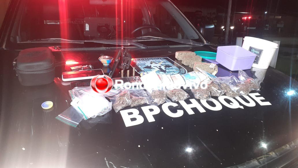 Uma equipe do Samu foi chamada para socorrer a baleada. Uma arma de fogo, drogas e dinheiro foram apreendidos com o casal.