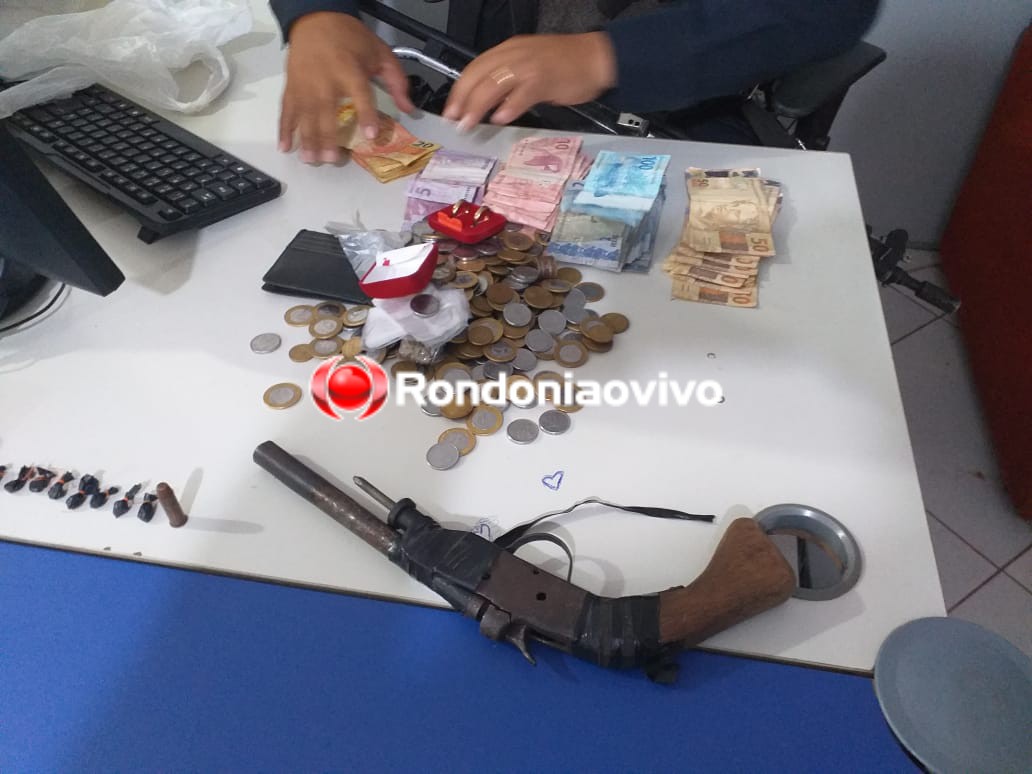 Os policiais disseram que durante o patrulhamento que faziam de rotina viram a dupla em frente da residência demonstrando atitude suspeita