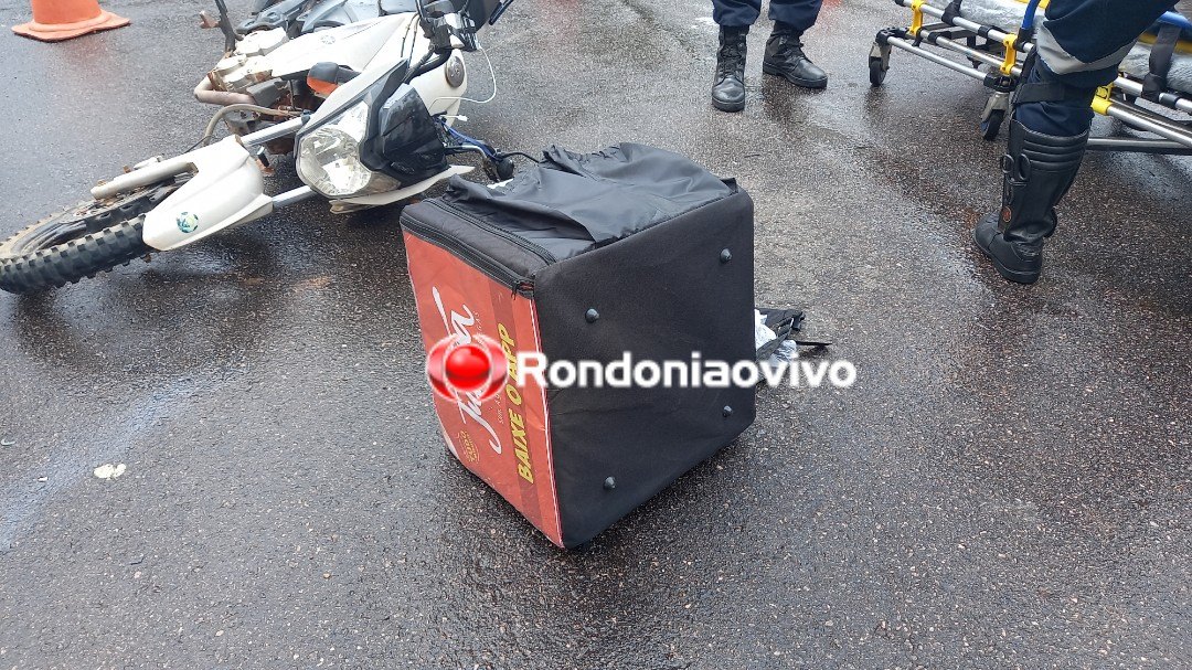 Em consequência da batida, o motoboy caiu ao solo e ficou com lesões diversas pelo corpo