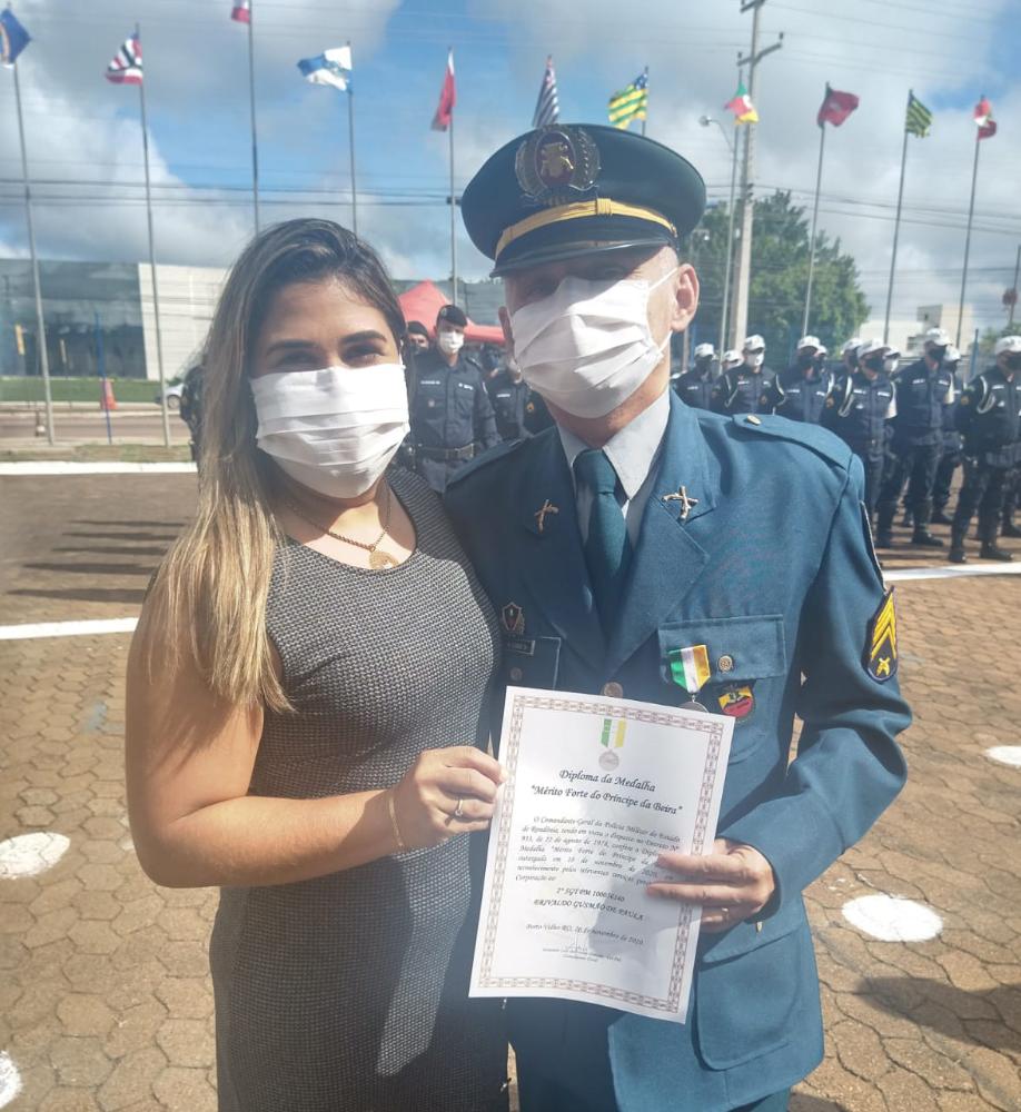 Durante cerimônia em comemoração aos 45 anos da Polícia Militar em Rondônia, o sargento Erisvaldo de Paula Gusmão, o conhecido sargento Gusmão do 5° Batalhão foi novamente homenageado.