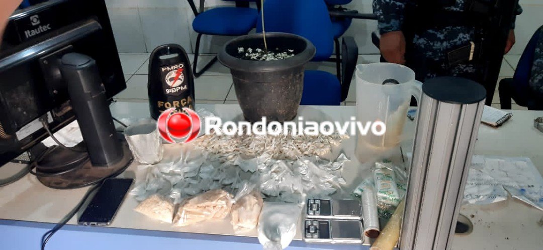 Carlos Alberto S. N., 18, foi preso no sábado (19) com aproximadamente 400 porções de drogas, uma muda de maconha e balança de precisão em uma boca de fumo no beco Tilápia, bairro Eletronorte, na zona Sul de Porto Velho (RO).