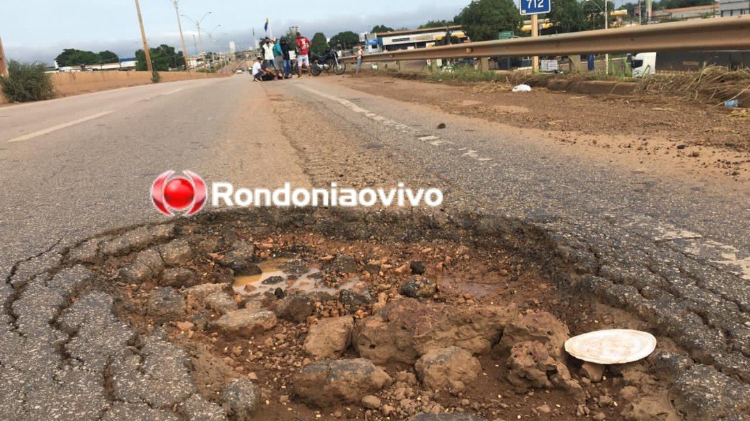 A mesma cratera na BR-364 já foi causadora de outros acidentes com motociclistas e até o momento não teve uma solução das autoridades competentes.