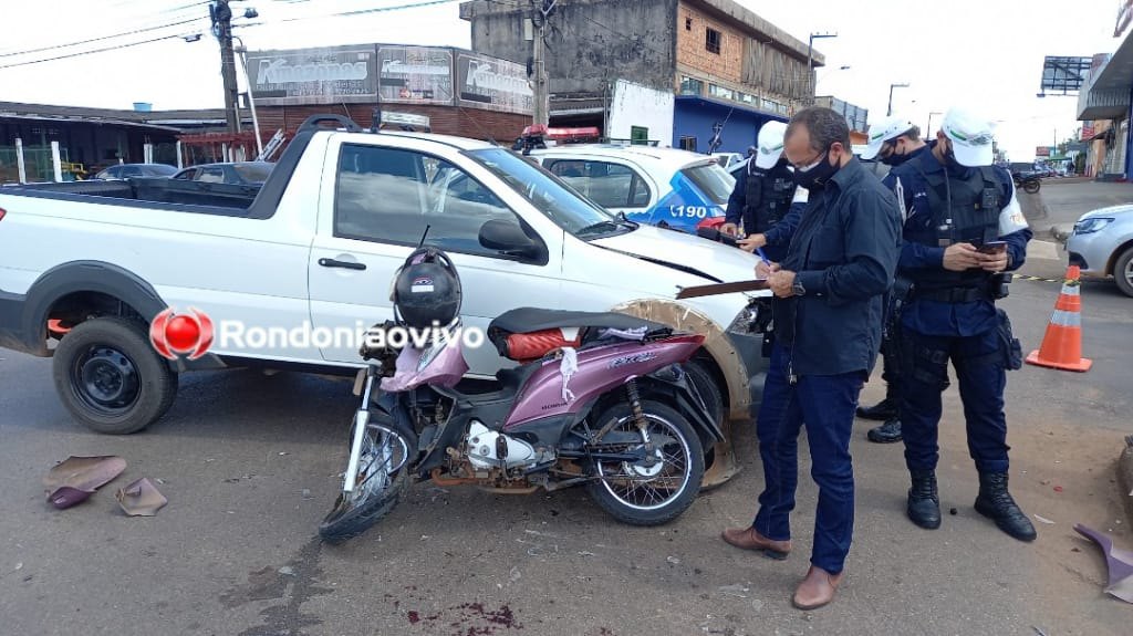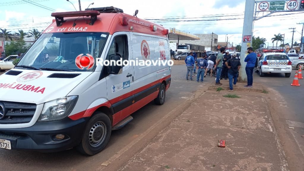 Um motociclista ainda não identificado ficou em estado gravíssimo após violento acidente de trânsito no começo da tarde desta terça-feira (11) no cruzamento das Avenidas Amazonas com Guaporé, na zona Leste da capital de Rondônia. A vítima foi socorrida ao hospital João Paulo II com fraturas expostas na perna e braço.