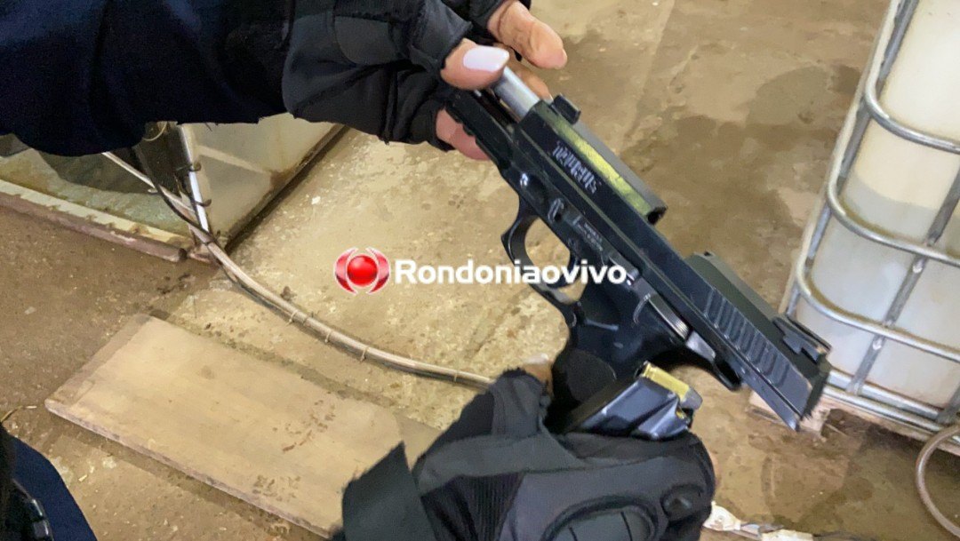 Davi saiu pulando muros de residências e logo depois também foi preso. No assoalho do banco do passageiro dianteiro, os policiais encontraram uma pistola com quatro munições calibre 380, sendo três intactas e uma deflagrada, além de um estojo de munição deflagrada e calibre não identificado.