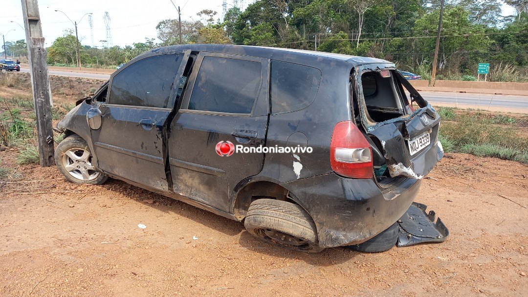 A motorista do carro modelo Honda Fit teve ferimentos leves e contou que seguia sentido Candeias do Jamari à Porto Velho, quando perdeu o controle da direção do veículo em uma curva.