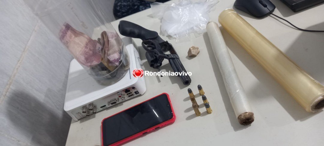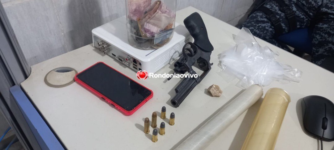 No imóvel, os militares apreenderam um revólver calibre 38 com seis munições e uma pedra grande de crack